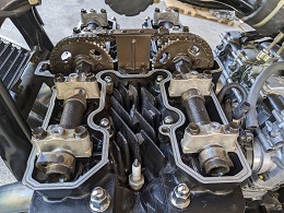 ヘッドカバーの上にあるボルト8本を外して、ヘッドカバーも外すのですが、プラハンで叩くだけでは無理。
